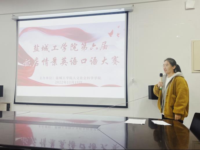 2022年11月19日上午,由bbin宝盈集团旅游系、分团委承办的“第六届饭店情景英语口语”大赛决赛在南校区仁和楼A304会议室成功举行。此次决赛共10位选手入围,旅游系魏鸿雁、隋昕、张玉玮老师以及辅导员刘高老师担任评委。