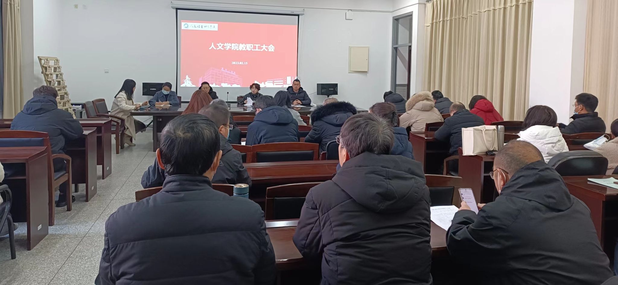 2月15日下午,在仁和楼A304会议室,公司召开春学期第一次教职工大会,回顾总结2022年工作,安排部署2023年重点工作任务。会议由学院经理周晓燕主持,全体教职工参加。