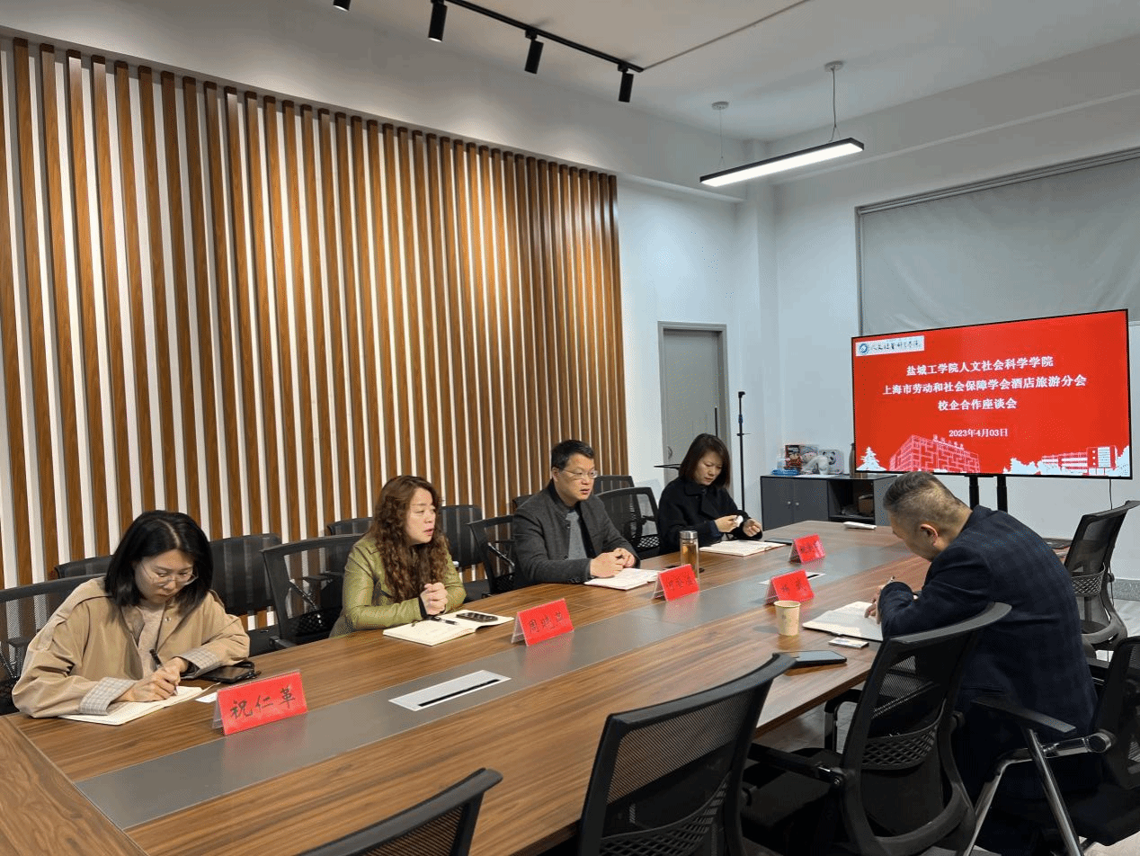 4月3日下午,在南校区仁和楼A302会议室,上海市劳动和社会保障学会酒店旅游分会长杨武来公司洽谈校企合作事宜。经理周晓燕主持会议,党总支书记何登溢、党总支副书记姚爱华、酒店系主任祝仁革参加。