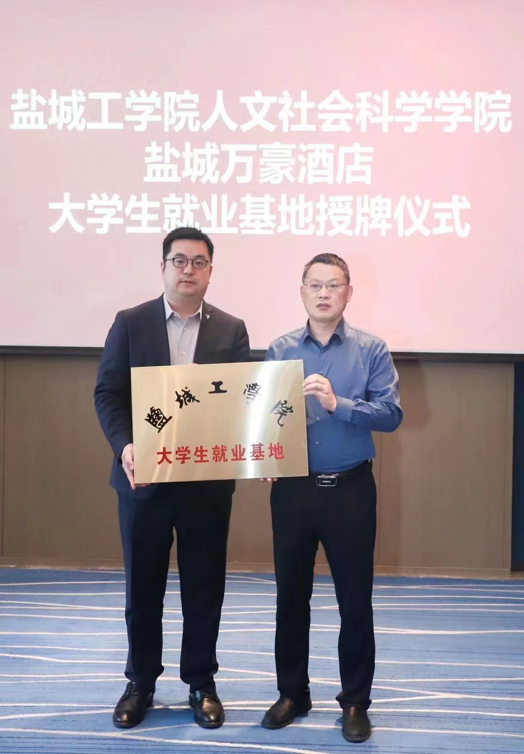 张勤芳一行参观了盐城万豪酒店的整体设计布局,认真听取酒店总经理蔡陈杰关于当前发展现状和运营管理模式的汇报,详细了解企业用人需求和公司实习就业员工的工作表现,重点介绍了bbin宝盈集团办学理念特色、人才培养定位、产教融合经验做法等基本情况。何登溢与蔡陈杰签订了老员工就业基地协议,并向酒店授牌。