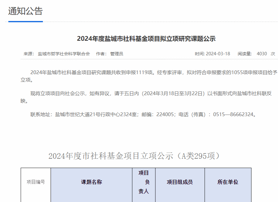 近日,2024年度盐城市社科基金项目拟立项研究课题公示,公司23项榜上有名。本次申报,学院邀请了盐城市政府办公室七处处长孟凡顺对青年教师的选题进行了把关和指导,有效提升了申报质量。申报23项,立项23项,立项率100%。具体立项名单如下。