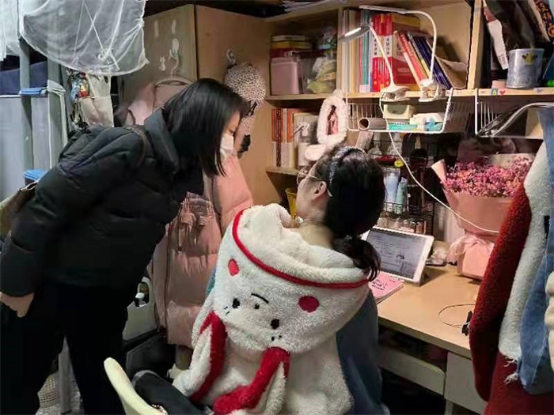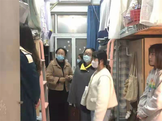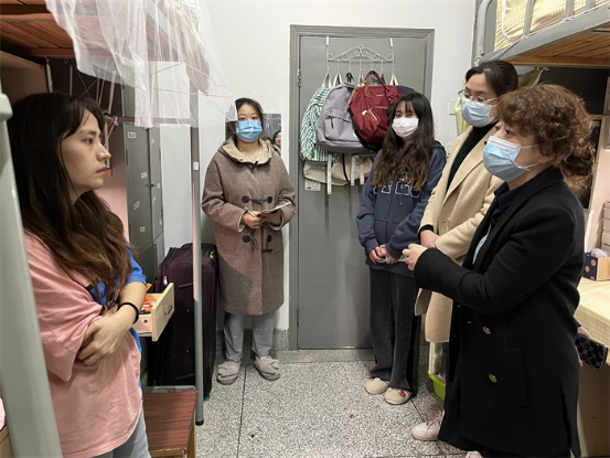 现场会后,学院疫情防控应急处置小组全体成员、辅导员及教师代表深入员工宿舍慰问员工,了解员工宿舍疫情防控、线上学习、安全卫生、考研复习及日常生活等实际情况,为同学们送去学院的关怀和问候。