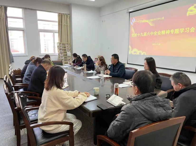 何登溢结合习近平总书记《关于<中共中央关于党的百年奋斗重大成就和历史经验的决议>的说明》和《中共江苏省委关于深入学习贯彻党的十九届六中全会精神的决议》,领学了《中共中央关于党的百年奋斗重大成就和历史经验的决议》,对决议的内容进行了详细解读。学院领导班子进行了重点发言,周晓燕结合学院工作谈了自己学习十九届六中全会精神的感悟,她用六个关键词,勉励同志们在新时代一起努力为学院事业再建新功;徐成、陶文俊、姚爱华分别结合分管领域工作分享了学习十九届六中全会的心得体会。其他与会同志也就学习十九届六中全会精神进行了补充发言。