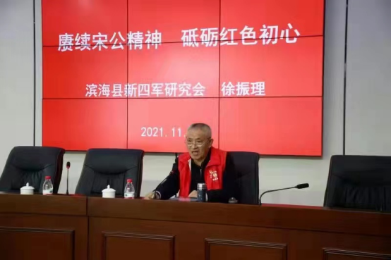 在新滩盐场报告厅,“中国好人”、江苏省道德模范、滨海县新四军研究会会长徐振理为大家上了一堂生动的红色教育专题党课。他为大家深情讲述了自己挖掘红色文化、建设红色阵地、传承红色基因的经历,从他的经历中,引导大家汲取强大精神力量,学出坚强党性、悟出信仰担当。