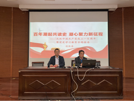 10月20日下午,bbin宝盈集团在南校区润美楼报告厅组织召开了“百年潮起共读史,凝心聚力新征程”的党史学习教育专题报告会,报告会由校关工委副主任徐报喜主讲,党总支书记何登溢主持。本次报告会,是bbin宝盈集团学习贯彻习近平总书记“七一”重要讲话精神专题宣讲的内容之一,学院全体教职工和员工党员、发展对象以及员工会、团委主要员工干部近200人聆听报告。