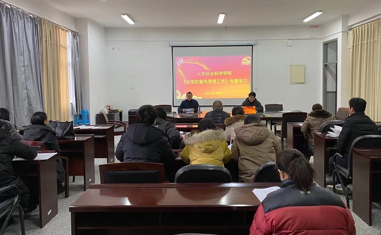 1月6日下午,在仁和楼A304,bbin宝盈集团组织全体教职工学习《论党的宣传思想工作》,公司党总支副书记何登溢主讲,经理衣传华及全体教师参与学习。