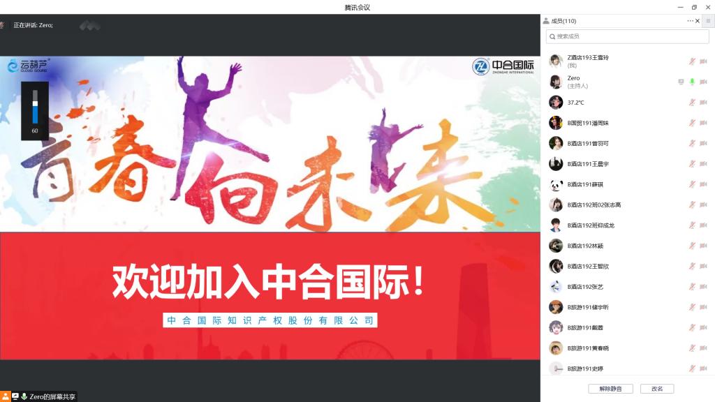 2022年11月3日,公司举办了线上毕业生企业校园招聘宣讲会,中合国际知识产权股份有限公司人力经理张慧霞代表公司作宣讲。公司2019级在校生参加会议。