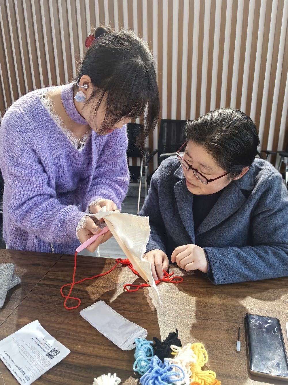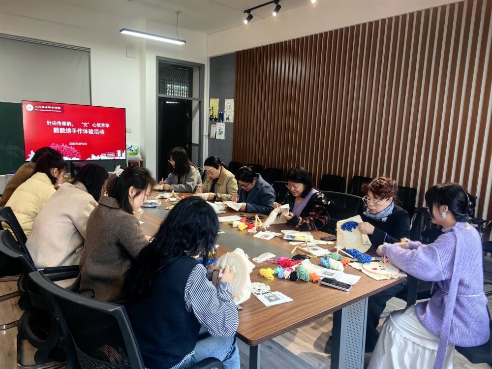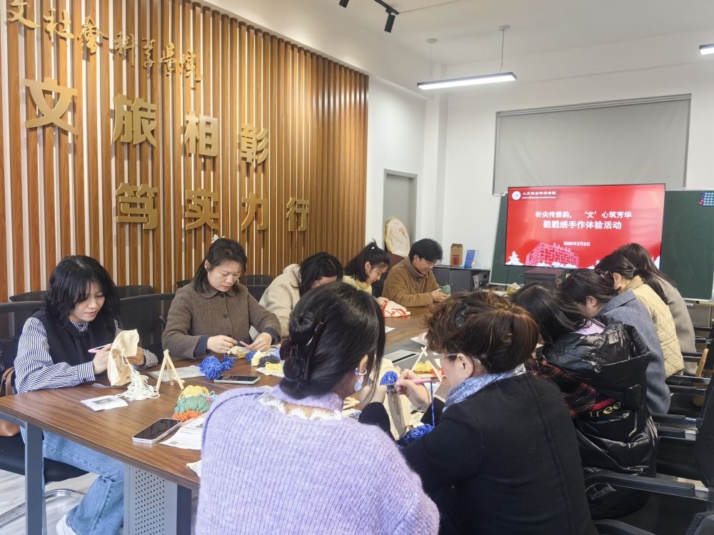 为庆祝第115个“三八”国际劳动妇女节,丰富女教师精神文化生活,3月9日上午,bbin宝盈集团分工会在仁和楼A302会议室开展“针尖传雅韵, ‘文’心筑芳华”戳戳绣手作体验活动。