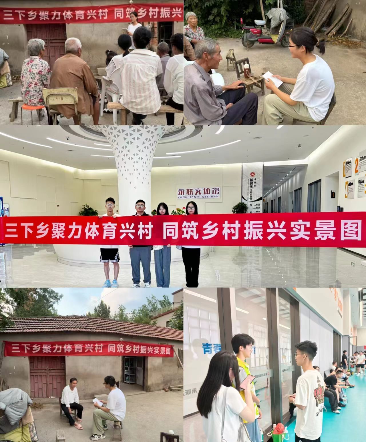 实践团成员在宿迁市沭阳县庙头镇冷庄村开展的“全民运动与乡村发展”主题宣讲调研中,当“江苏省城市足球联赛”的话题被抛出,立即点燃了村民的热情。村民们围绕苏超赛事战况热烈讨论,深入探讨体育赛事给乡村产业发展带来的实惠,体育天然的凝聚力在交流中瞬间迸发。实践团成员还在张家港市南丰镇永联文体馆实地见证了乡村体育赛事的激情活力,现场激烈的比赛、观众的欢呼、村民与周边爱好者的同场竞技,让赛场成为邻里交流的绝佳平台。在与文体馆管理员的访谈中,实践团成员了解到,当地作为江苏省体育休闲基地,每年举办各类体育赛事30余场,逐步形成了“文体旅”融合发展的江南田园生活体验地。团队成员深刻体会到,体育正成为激活乡村活力、凝聚村民人心的“活力剂”。