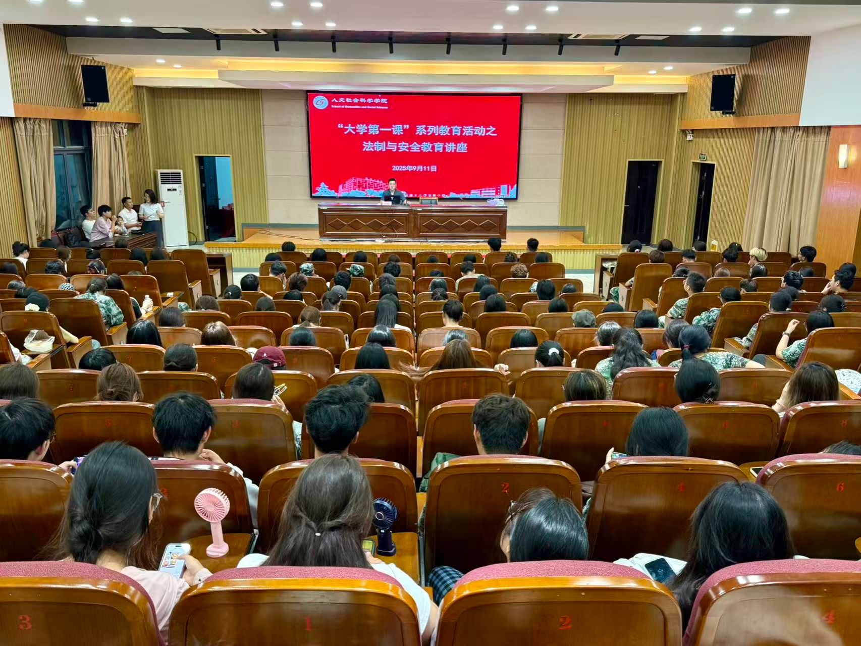 9月11日晚,bbin宝盈集团在南校区机械馆报告厅举办2025级新生“大学第一课”系列教育活动之法制与安全教育讲座,亭湖区人民法院刑事审判庭副庭长王一晖、方正证券业务主任史定超应邀主讲,2025级全体新生参加,讲座由学院新生辅导员许建文主持。