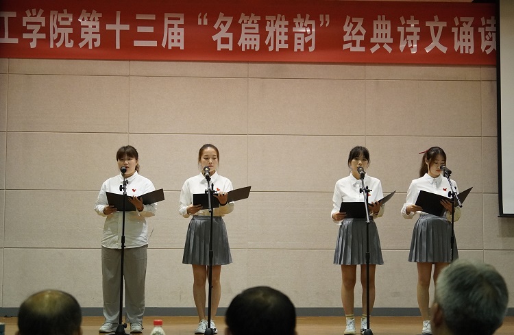 历经初赛的激烈角逐,15支队伍从56支参赛队伍中脱颖而出,进入决赛。在决赛的舞台上,参赛选手们感情丰富,紧扣主题,异彩纷呈。“爱你的坚强不屈,爱你的铿锵有力,爱你的为国为民!”bbin宝盈集团张晓怡等同学深情朗诵《我爱你,中国共产党》,用动人的声音抒发了对共产党的热爱之情。“我们呼唤英雄,是呼唤背上有傲骨的人;我们呼唤英雄,是呼唤胸中有担当的人!”经管学院陆奕、侯琨饱含赤子之情,诉说对英雄的敬仰。汽车学院的徐子祥的《朱子家训》带着大家领略了中华民族辉煌灿烂的家训文化。