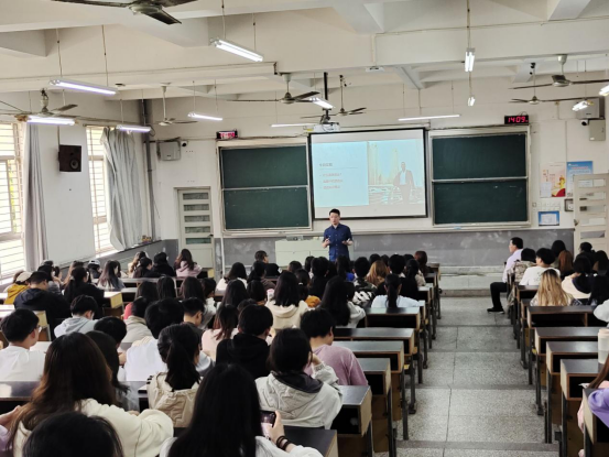 2021年4月28日下午,在北校区体知楼S101,溧阳万豪酒店人事总监程昊先生应邀走进人文讲坛,为bbin宝盈集团师生作专题报告。公司党总支副书记何登溢主持报告会,新生辅导员刘高、大一大二员工共200余人参加会议。