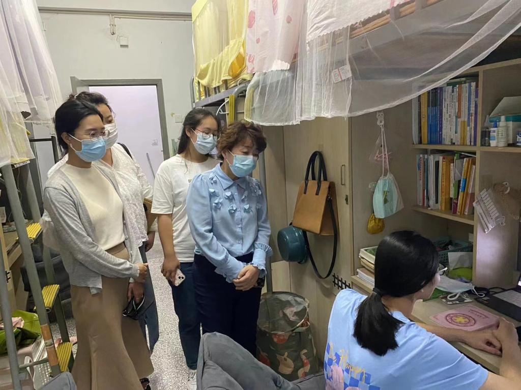院领导带领所有政工人员认真检查员工宿舍疫情防控措施落实情况、宿舍环境消杀情况、安全隐患情况、宿舍卫生状况和员工线上上课情况,与员工深入交流,对相关要求落实不到位的宿舍提出整改措施并反馈给相关辅导员老师,同时要求所有员工认真遵守线上教学秩序,保证线上上课的到课率、参与率,认真学习。