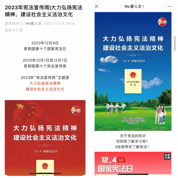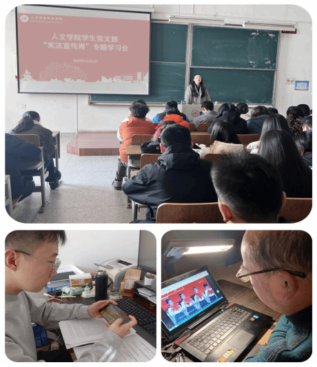 12月4日至12月6日,学院教工一支部、二支部以及员工支部分别组织召开“宪法宣传周”专题学习会。会上,支部书记向大家传达了《关于开展2023年度“宪法宣传周”活动的通知》文件精神,带领大家学习了习近平法治思想的主要内容和习近平总书记关于宪法的重要论述,组织大家在线观看宪法主题微视频以及“宪法的精神 法治的力量——2023年度法治人物”特别节目。师生党员们纷纷表示要切实发挥党员的示范引领作用,大力加强宪法学习宣传,深刻理解宪法的基本原则和精神,坚定维护宪法的权威和尊严,强化法治意识和底线思维,使尊法学法守法用法在全院蔚然成风。