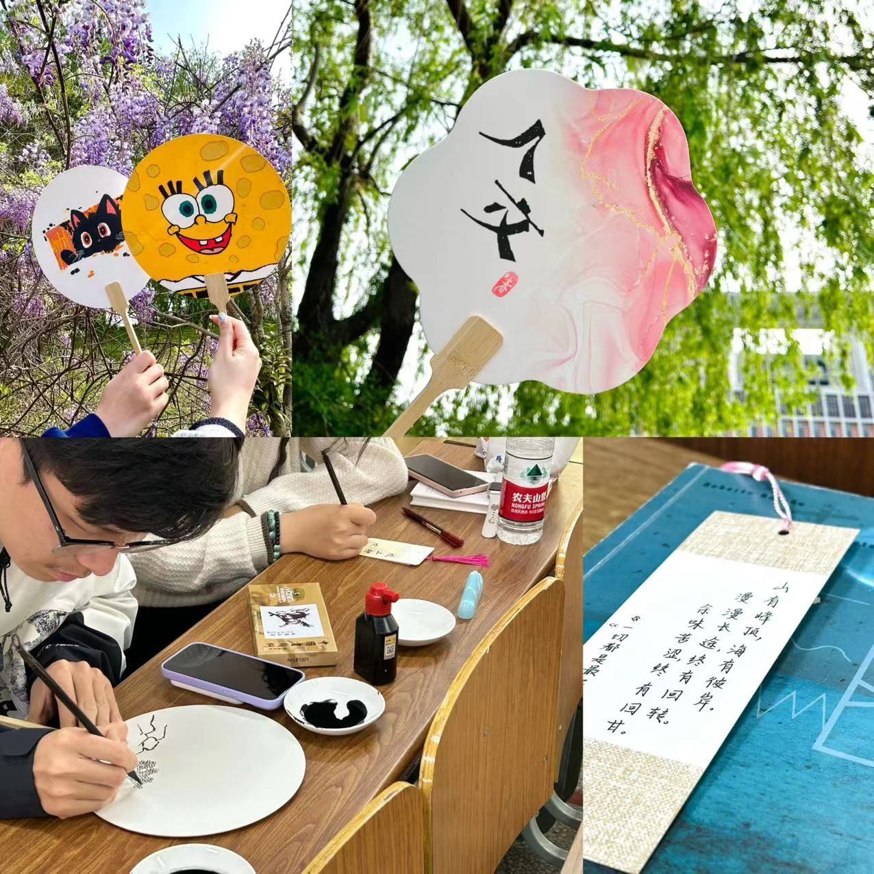 除了传统的读书分享环节,团扇、书签绘制也引起了同学们极大关注和兴趣。同学们手持彩笔,聚精会神地在团扇上写上自己喜爱的诗句,亦或是绘制心中的风景。每幅作品构思新颖、设计精巧,寄托了同学们对创意的追求,也包含着无限的诗情画意。活动现场气氛热烈,B中文232茅清芝表示,“活动中我们难得放下手机,专心投入DIY书签和团扇,既领略到了传统文化的魅力,也从中感受到电子阅读无法带来的乐趣与心灵的平静。”