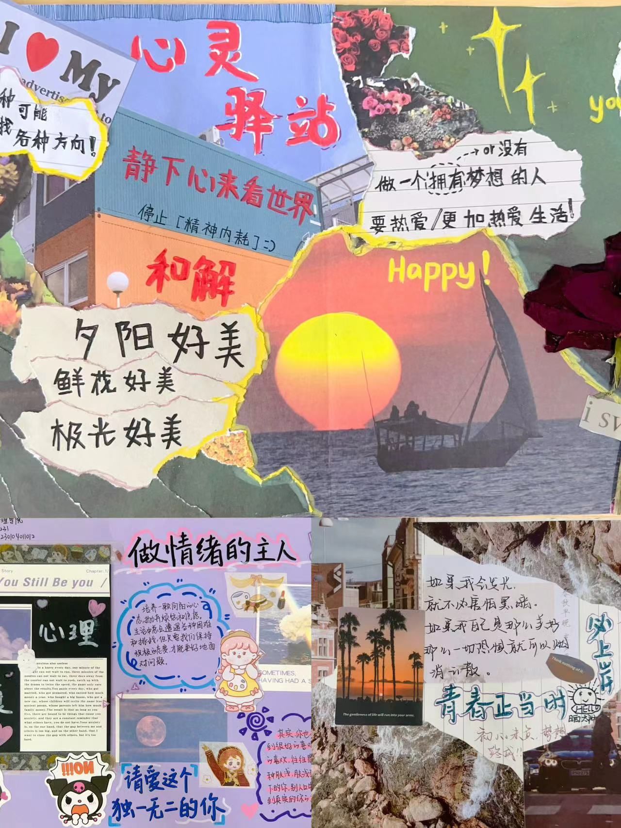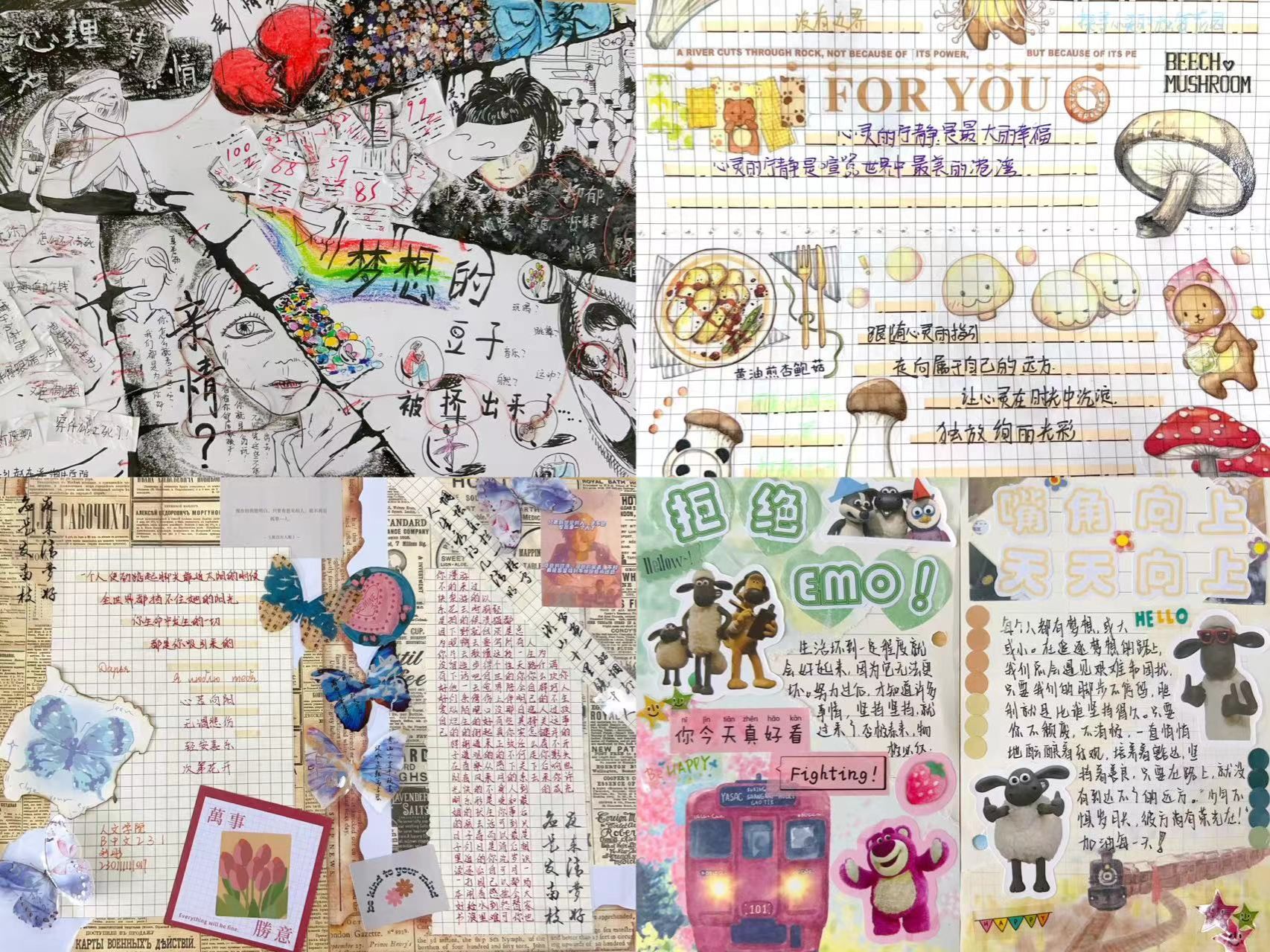 本次活动特色鲜明,主题深度与广度兼具,鼓励同学们以手账形式记录生活点滴,体悟当下幸福、努力构建积极健康的心灵世界。活动开展以来,得到了来自各个学院各个年级同学们的积极响应,共征集到优秀的手账作品69件,充分展示了同学们的创意和才华。参赛选手们将日常生活中的点滴感悟、科学认知与心灵体验融为一体,创作出了一幅幅独具匠心的手账作品。他们用手中的画笔,记录下心灵的成长与变化,表达了对积极、健康心态的向往与追求。最终,学院从主题内容、版面设计、构思创意等多方面对参赛作品进行评选,共决出一等奖5名、二等奖11名、三等奖21名,优胜奖若干。