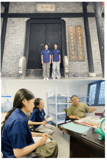 同日下午,实践团来到新四军重建军部旧址泰山庙采访了文物修复师江涤非,江老师向大家介绍了文物修复工作的现状、基本流程和技术要求,讲述了其探寻文物前世今生的修复工作经历,充分展现了一名文物保护工作者的质朴之心和使命担当。团队成员还就革命文物的定义和典型的界定、文物保护的价值意义等方面与江老师展开深度交流。