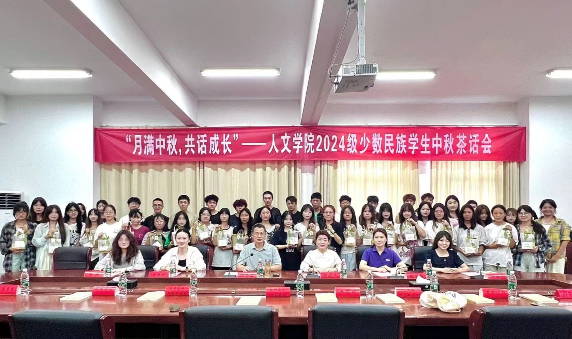 茶话会尾声,学院领导为每位少数民族员工送上了精心准备的中秋节礼品,传达了学院对各族员工的关爱和祝福,也寄托了对同学们在校学习生活的美好期许。