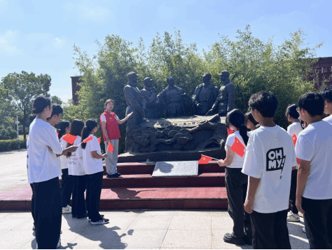 随后,同学们来到学校铁军广场。“文心苑”一站式员工社区志愿者、“苏行·传递新四军文物之声”社会实践团成员陆澄、段黄蕊等同学向大家介绍了铁军广场“青松傲雪”雕像的由来,讲述新四军革命先烈们在盐阜大地上的英勇事迹。最后,大家手举小红旗,共同唱响《没有共产党就没有新中国》、《我爱你中国》、《少年中国说》等红色歌曲,将对党的感激之情和对祖国的赞美融入到歌声中,以昂扬的精神风貌唱响了颂党恩、跟党走的时代主旋律。
