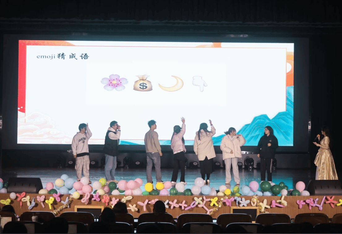 晚会在寻梦乐队带来的歌曲表演《崇拜》中缓缓揭开帷幕。紧接着,王艺菲等同学用饱满热情呈现的集体舞《像你这样的朋友》,脚步轻快、精神昂扬,尽显人文学子朝气蓬勃的青春风貌。麦尔丹和陈嘉怡两位同学以独特的嗓音和细腻的情感表达深情演绎歌曲《罗生门》。田阳等同学用现代幽默诙谐的表演方式,将古装剧经典片段《甄嬛传之滴血验亲》演绎得生动有趣,引得现场观众阵阵笑声。阿迪莱·阿卜杜外力等少数民族同学带来的舞蹈《雪莲花开》典雅优美,仿若一朵朵盛开的纯白雪莲。李羽夕等同学的三人合唱《想你时风起》婉转悠扬,吹起了大家心中的悸动与感怀。张羽嫣等同学演绎的配音秀《小时代之作业划水版》,结合现代热梗,幽默感十足。刘思睿、丁羿丹带来的街舞串烧和艾尚模特社的服装走秀《AI SHANG——Show》青春动感,魅力四射,点燃了全场观众的热情,将晚会推向高潮。邱子涵同学的古筝演奏与钟颖颖、许琰熙两位同学的古典舞相得益彰,将国风歌曲《红马》演绎得如诗如画,令人陶醉。秋雨话剧社以“五四运动”为背景,展演的红色话剧《破晓》,让观众仿佛置身于青年为了国家的尊严和民族的未来,振臂高呼、奋起抗争的觉醒年代。王紫郦等同学带来的原创诗歌朗诵《鹤舞鹿鸣·盐城绿林湿意浓》,用清澈的心灵之声,将盐城黄海湿地的自然美景、生态和谐与生物多样性的独特魅力娓娓道来。24级新生代表们通过《如愿》的歌声传递着青年员工对未来的无限憧憬与坚定信念。