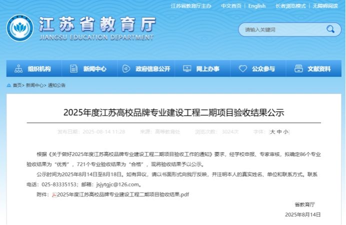 近日,在江苏省教育厅近日公示的2025年度高校品牌专业建设工程二期项目验收结果中,中文系参与验收的汉语言文学专业顺利通过。