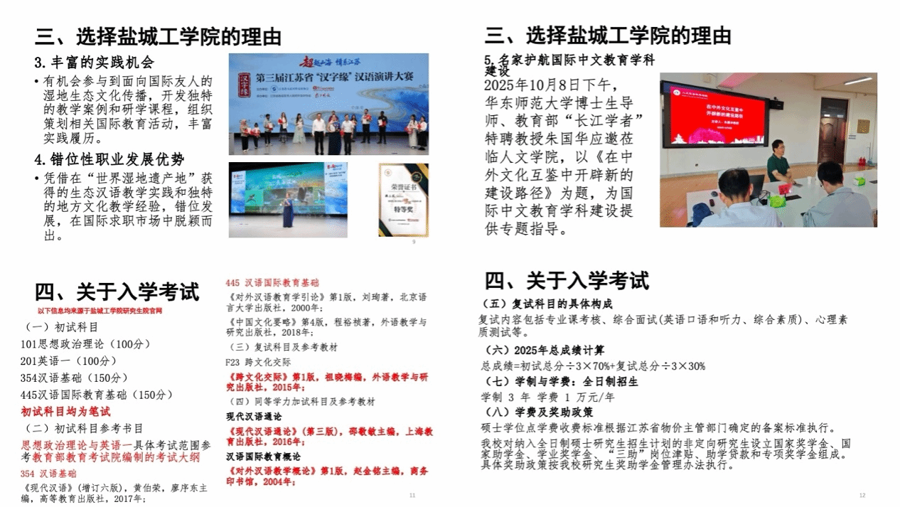 为提升学位点影响力,拓展优质生源渠道,10月中旬以来,学院组织由专业教师与在读研究生组成的宣传团队,先后前往扬州大学广陵学院、苏州科技大学天平等高校开展专场招生宣讲。团队精心准备宣讲材料,系统介绍学位点特色、培养模式、奖助政策与发展前景,并与考生现场交流互动,反响热烈。 此次宣讲有效增强了公司国际中文教育专业的认知度与吸引力。欢迎广大学子报考bbin宝盈集团国际中文教育硕士研究生!感谢社会各界对公司团队建设工作的关注与支持!