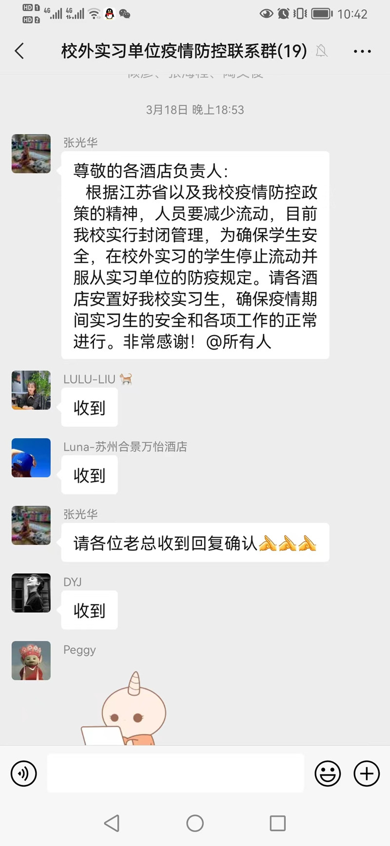 各专业系召开线上会议,传达疫情防控相关政策要求。4月8日,中文系、旅游系和酒店系分别召开了2022届员工疫情防控工作线上会议,要求在思想上高度重视防疫工作,既要遵守学校的疫情管理规定,也要服从社区防疫管理,加强自身防护;时刻绷紧疫情防控这根弦,主动纳入社区网格化管理,按要求进行核酸检测;健康码和行程码如有变化,及时上报学院辅导员和论文指导老师。