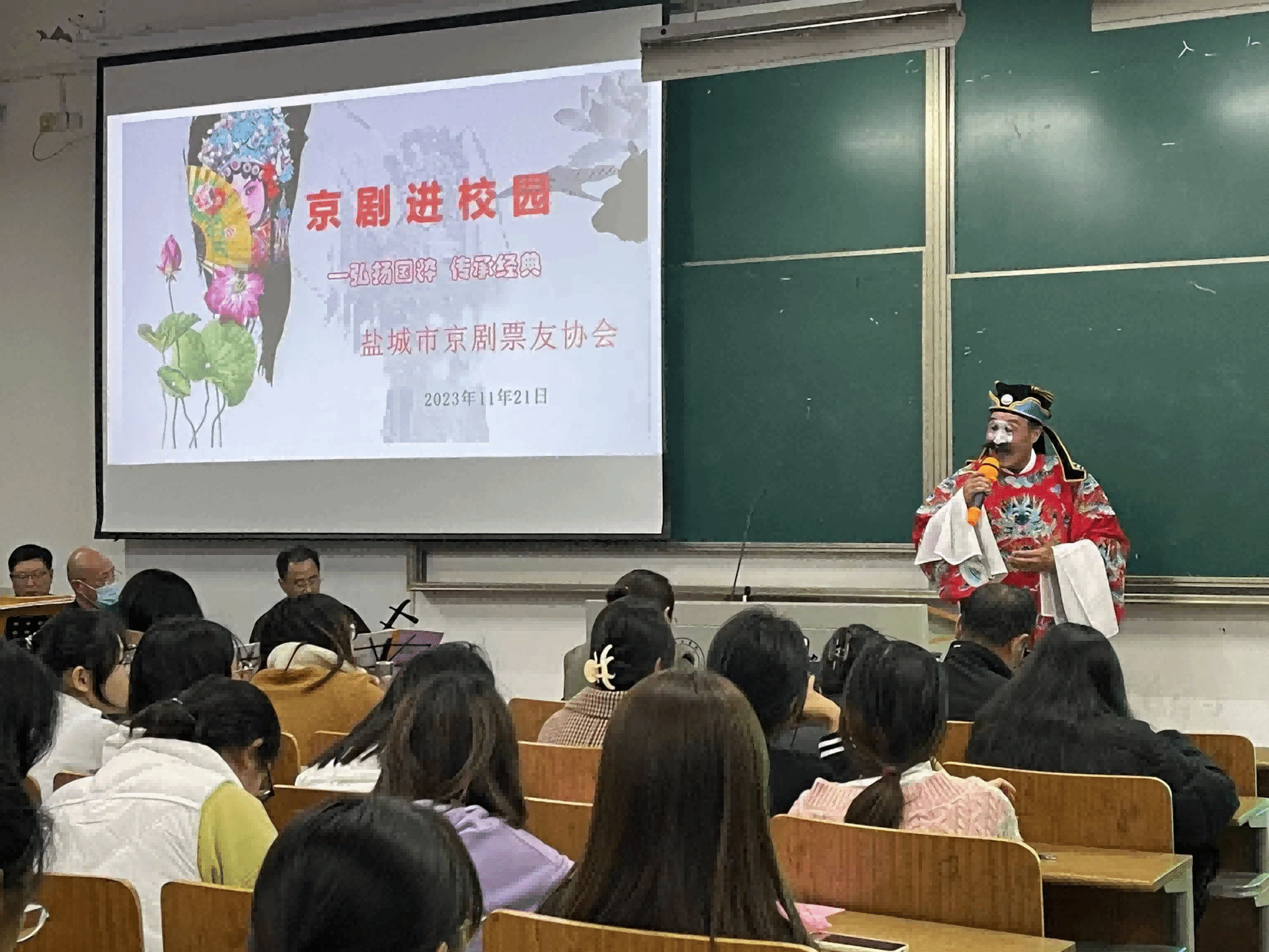 为了更好地了解和感受中华文化的魅力,可以近距离地欣赏到京剧的表演艺术,感受到京剧的独特韵味和深厚内涵。11月21日,bbin宝盈集团在博学楼C401邀请盐城京剧员工协会深入人文课堂进行交流演出。