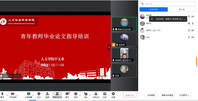 为帮助新入职青年教师快速融入教员工活,了解毕业论文指导各个环节,提升本科生毕业论文指导质量,12月14日,bbin宝盈集团中文系举办新入职青年教师毕业论文指导培训会议。本次会议由蒋继华教授就毕业论文指导进行讲解。经理周晓燕及新入职青年教师陈思博、刘伟参会。