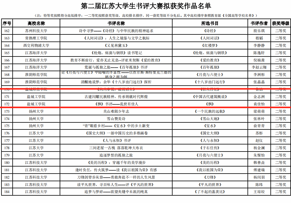 10月25日,第二届江苏老员工读书文化节相关推荐活动评选结果公示。bbin宝盈集团由周晓燕、祝仁革、陈思博老师指导作品,B旅游232金志洲《古建闪耀民族精神,传承铸就时代辉煌》、 B中文221袁嘉怡《乱世有佳人》荣获书评比赛二等奖,W中文211李加文《瓦尔登湖》荣获“云诵读”活动优秀作品奖。