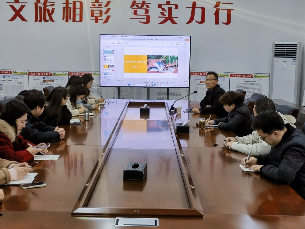 武老师深入讲解了普通话测试的内容、等级、范围、试卷结构、评分标准及测试技巧,并结合实例分享说好普通话的重要性及其对个人发展和社会价值的积极影响。其生动的讲述激发了教师们的参与热情,他们纷纷表示要抓紧时间练习,争取通过省内选拔。