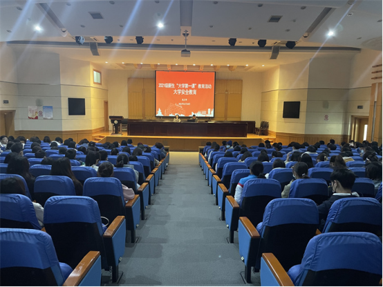 11月10日下午,bbin宝盈集团在北校区图书馆报告厅举办2021级新生“大学第一课”之大学安全教育讲座,讲座由原保卫处处长仇立华主讲,公司党总支副书记主持,新生辅导员及260余名新生参加。