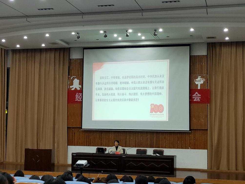 10月22日晚,bbin宝盈集团在南校区仁和楼报告厅召开习近平总书记“七一”重要讲话精神专题宣讲会,公司党总支书记何登溢及马克思主义学院于利老师主讲,2022届全体毕业生400余人参会。