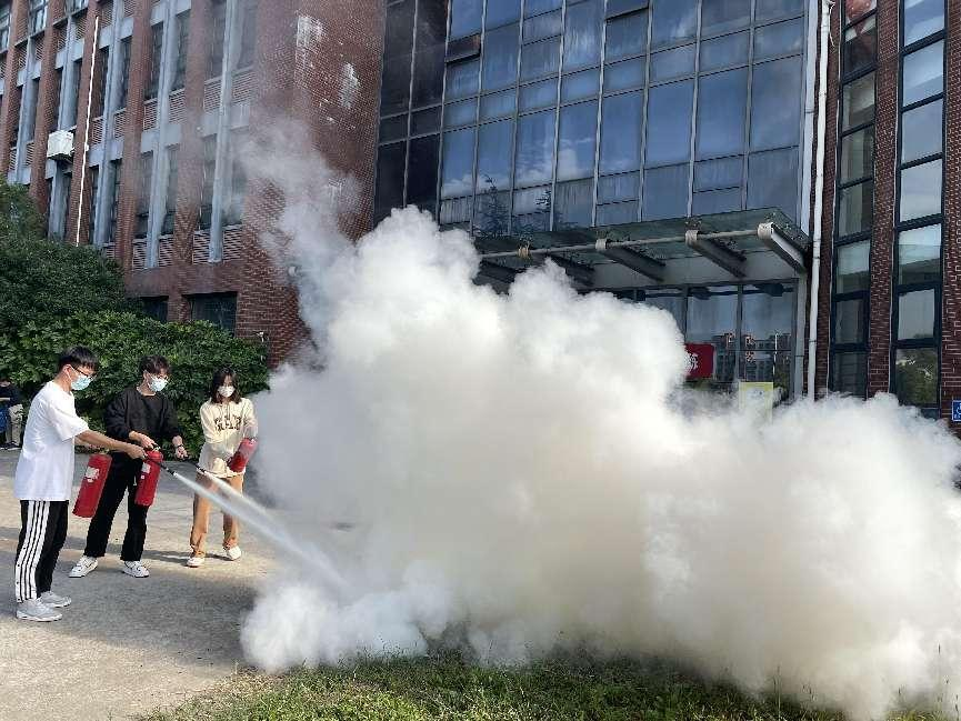疫情防控演练后,学院开展了消防安全演练。演练前,安全保卫处宋兆群科长给全体师生宣讲了消防安全知识和灭火器的正确使用方法并指导学院师生演练了灭火和应急逃生两个项目。