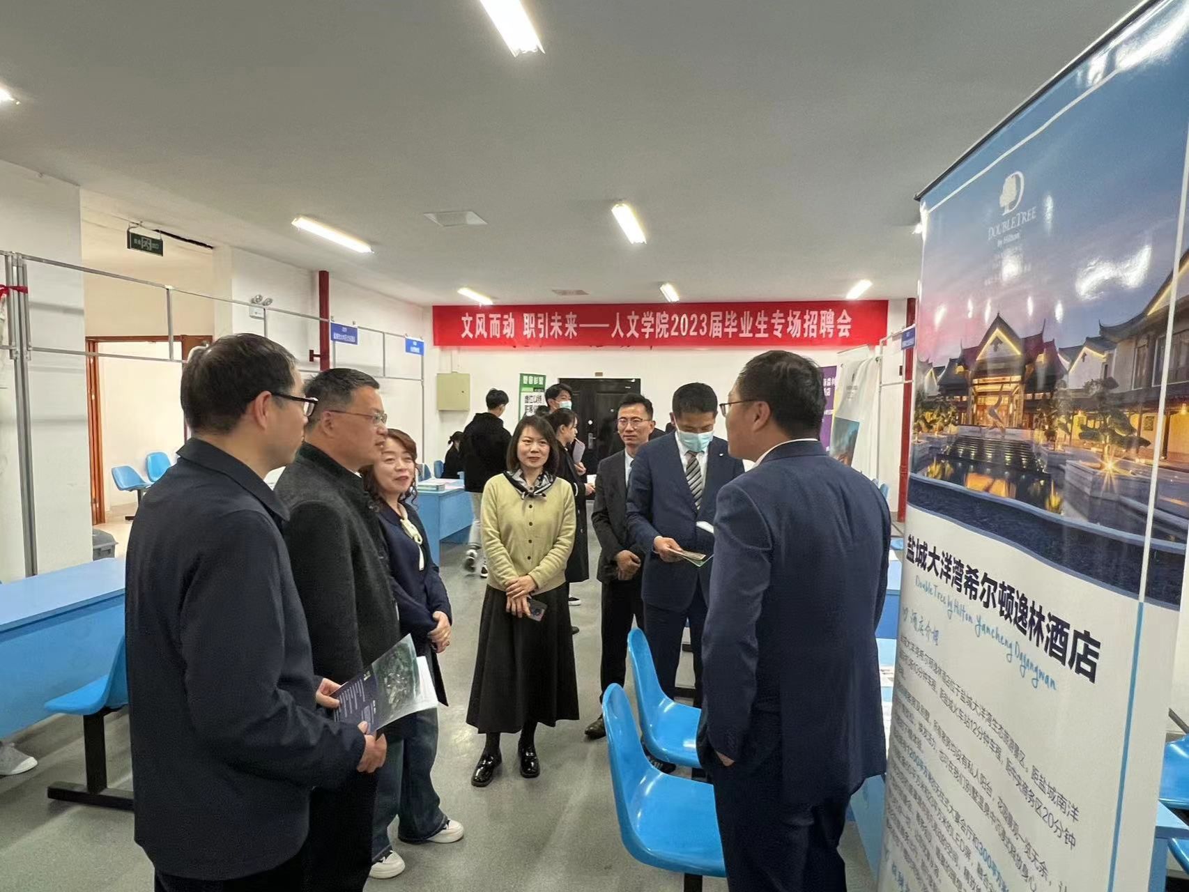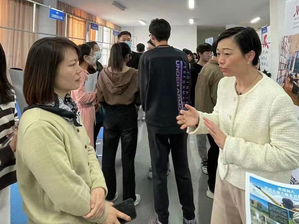 4月12日下午,bbin宝盈集团在希望大道校区老员工活动中心一楼就业市场举办“‘文’风而动,‘职’引未来”2023届毕业生专场招聘会。招生与就业创业指导处副处长王益群,公司党总支书记何登溢、经理周晓燕莅临现场,与用人单位及参会员工亲切交流,详细了解企业用人需求及毕业生就业进展。公司党总支副书记姚爱华主持并全程参与本次招聘会。