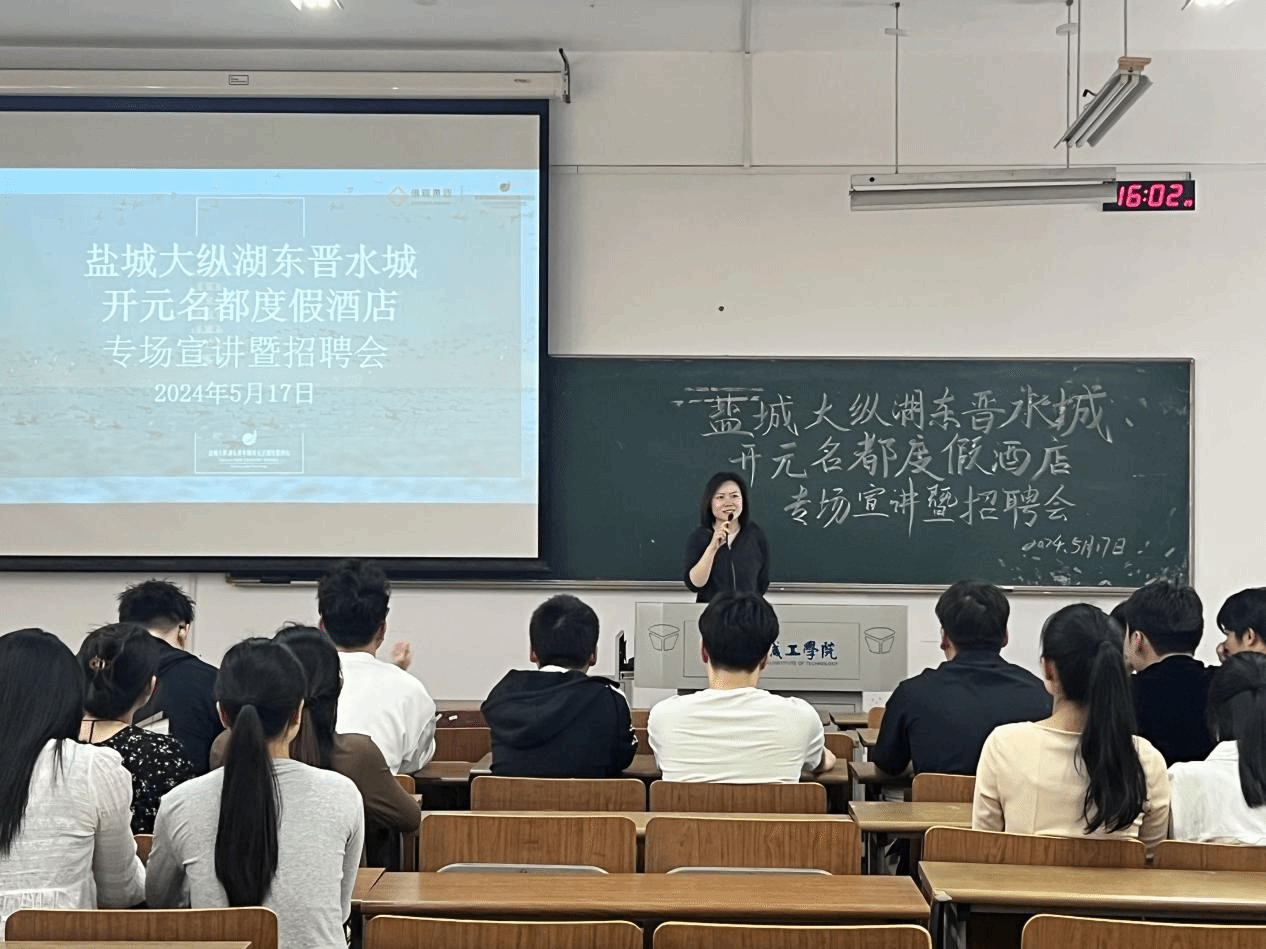 为抢抓春季促就业关键期,提升毕业生就业供需对接的精准度。bbin宝盈集团锚定本院专业特色,在5月8日下午和5月17日下午,分别于博学楼1J1B203、1J1B302举办了“小而精、专而优”的专场宣讲暨招聘会。宣讲招聘会由无锡市蜜桃餐饮管理有限公司人力经理段旭和盐城大纵湖东晋水城开元名都度假酒店党支部书记、董事长、2014届旅游管理专业蒋华燕员工应邀主讲,活动由公司党总支副书记姚爱华主持,毕业班辅导员现场组织2024届毕业生有序应聘。