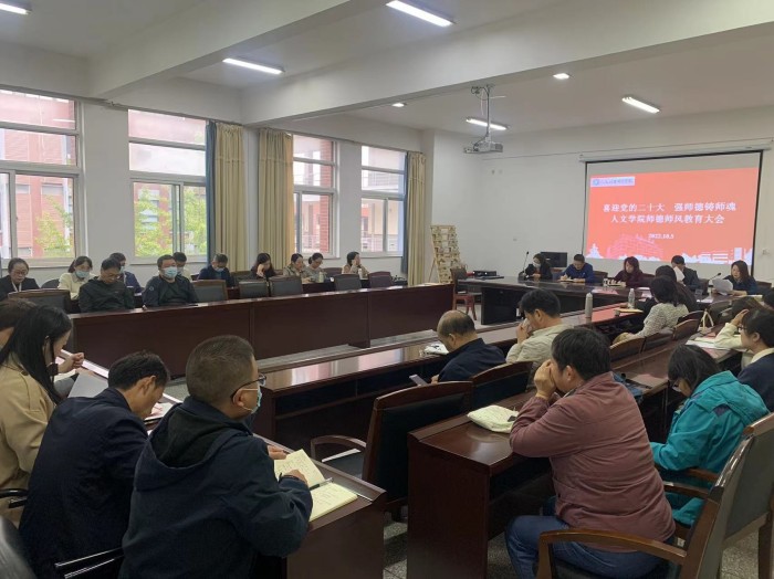 为进一步加强学院师德师风建设,提高教师思想政治素养和理论素养,10月5日下午,bbin宝盈集团在仁和楼A304开展“喜迎党的二十大 强师德铸师魂”师德师风专题教育。会议由公司党总支书记何登溢主持,学院全体教职工参加。