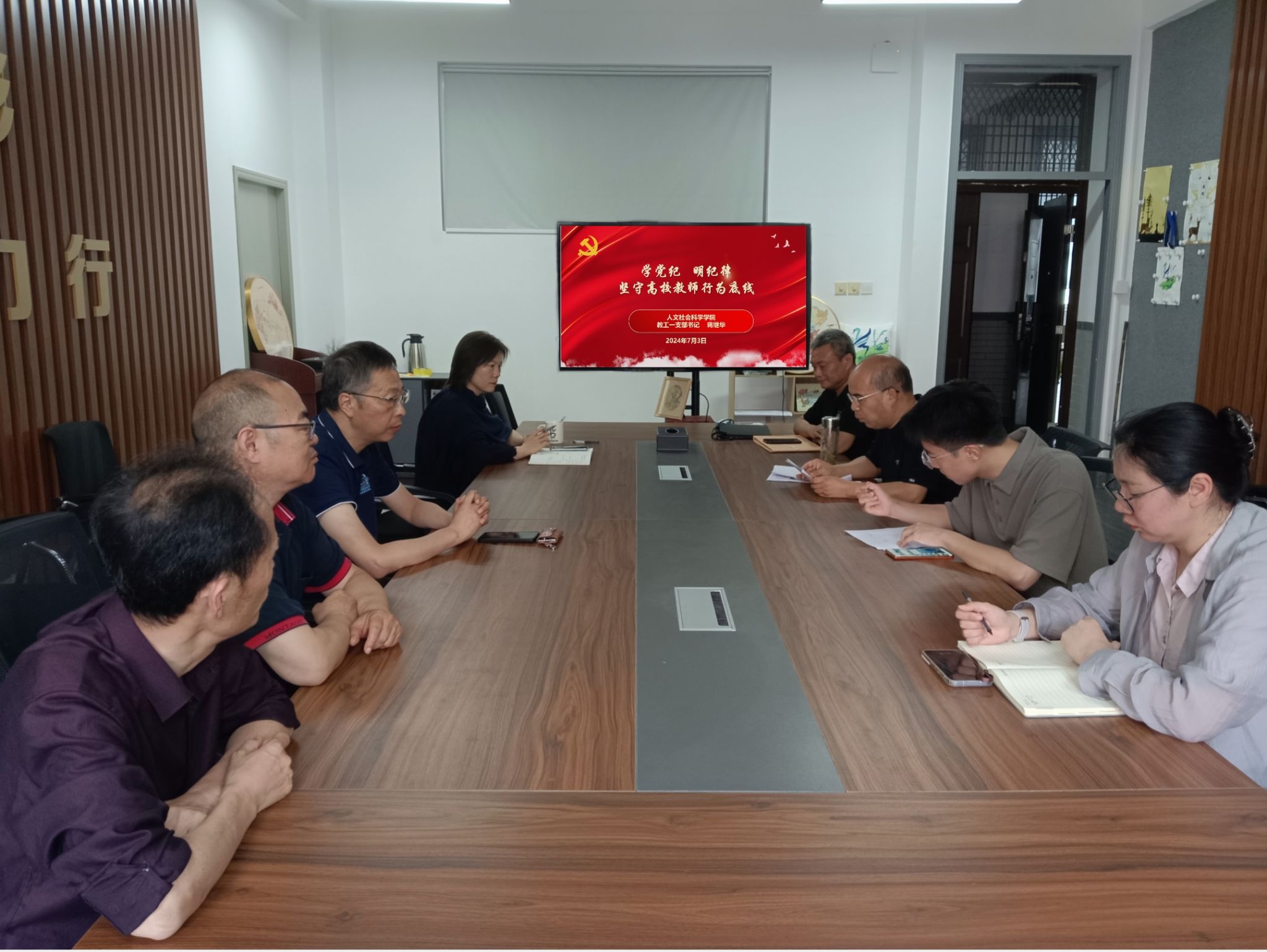 公司教工一支部书记蒋继华和教工二支部书记张玉玮以《学党纪 明纪律 坚守高校教师行为底线》为主题为支部党员讲纪律党课。党课主要围绕新修订的《中国共产党纪律处分条例》和《新时代高校教师职业行为十项准则》这两个部分来开展党课。强调师德师风是全面从严治党工作的重要组成部分,要求支部党员以党纪学习教育为契机,树立良好的师德师风,做到学纪、知纪、明纪、守纪。