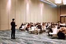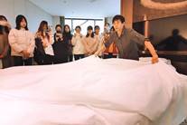 盐城万豪总经理蔡陈杰向员工们介绍了盐城万豪的总体概况,并以学校员工“大师哥”的身份鼓励员工学好专业知识,“心怀梦想,脚踏实地”。人力资源总监刘玲讲述了个人的奋斗经历,勉励员工们要放平心态、积极好学,充分发挥个人的能动性,厚积薄发。运营总监沈磊分析了当前服务业发展形势,指出服务管理的重要性,强调员工要及时做好人生职业规划。