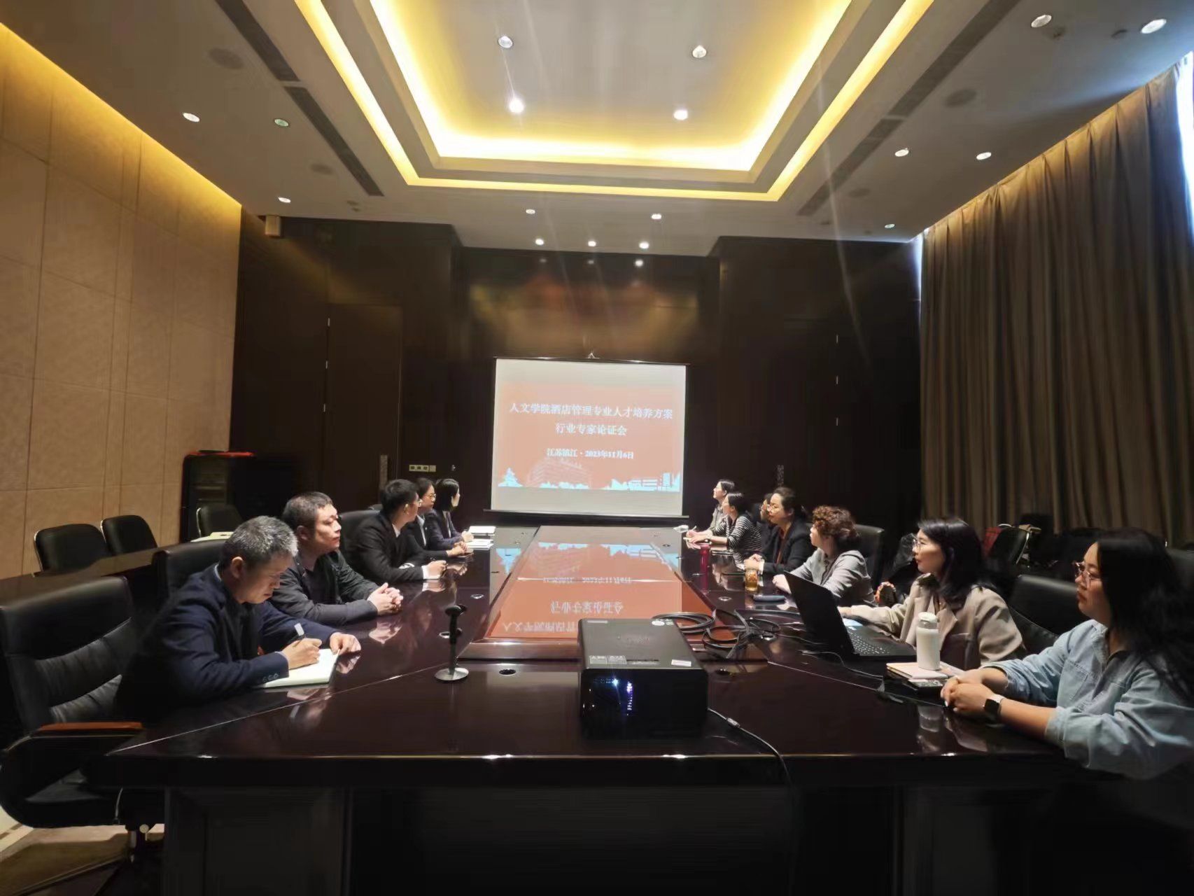 11月6日,bbin宝盈集团在江苏镇江举办产教融合、酒店管理专业人才培养方案行业专家交流会。bbin宝盈集团经理周晓燕、副经理陶文俊,部分教师,扬中菲尔斯金陵酒店总经理助理王改萍、总经理助理王三伟、行政人事总监周晴等行业专家参加此次会议。